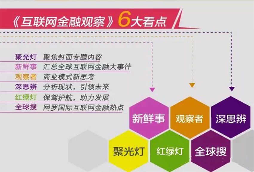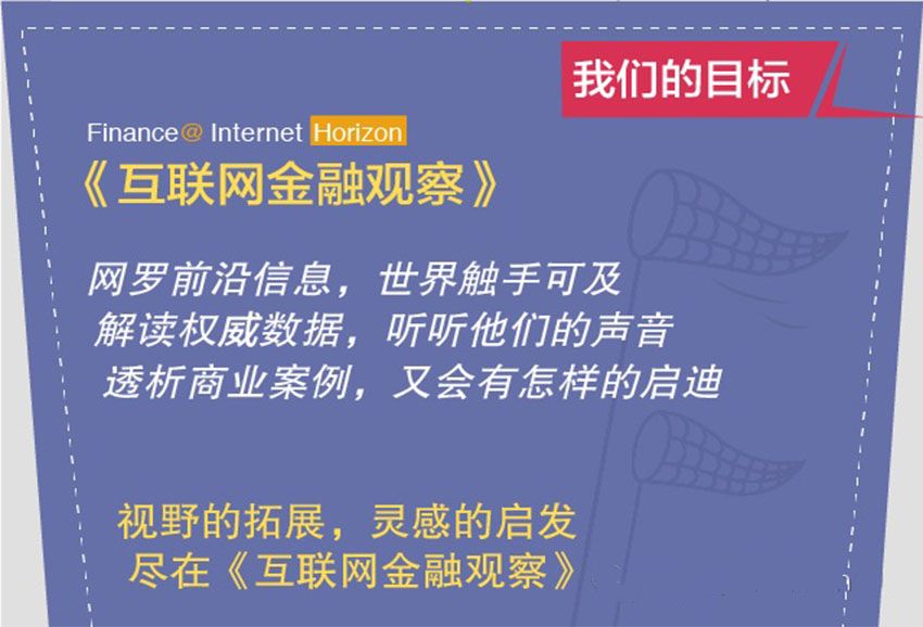 全年一共12期,月刊,單期68頁,彩色銅版紙。出版單位:互聯(lián)網(wǎng)金融觀察編輯部