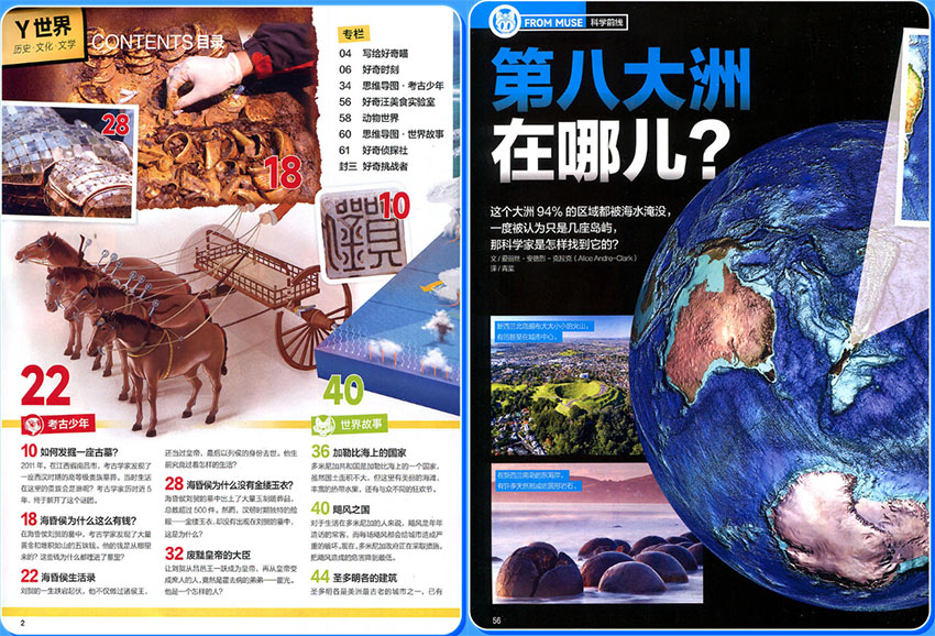 《好奇號》的內(nèi)容精選自Cricket Media旗下五大王牌刊物——Muse(科學(xué))、Faces(世界文化)、Dig(考古)、ASK(兒童科學(xué))、Cricket(文學(xué)),涵蓋科學(xué)、技術(shù)、自然、歷史、文化、文學(xué)六大領(lǐng)域。每期128頁超大容量,包含“X星球”(科學(xué)探索)與“Y世界”(人文歷史)兩冊主刊,以及32頁中英雙語兒童文學(xué)讀物。其內(nèi)容團(tuán)隊(duì)由科學(xué)家、歷史學(xué)家、兒童文學(xué)作家組成,確保知識權(quán)威性與趣味性并存,曾獲美國父母選擇獎金獎、全美雜志大獎等14項(xiàng)國際大獎。