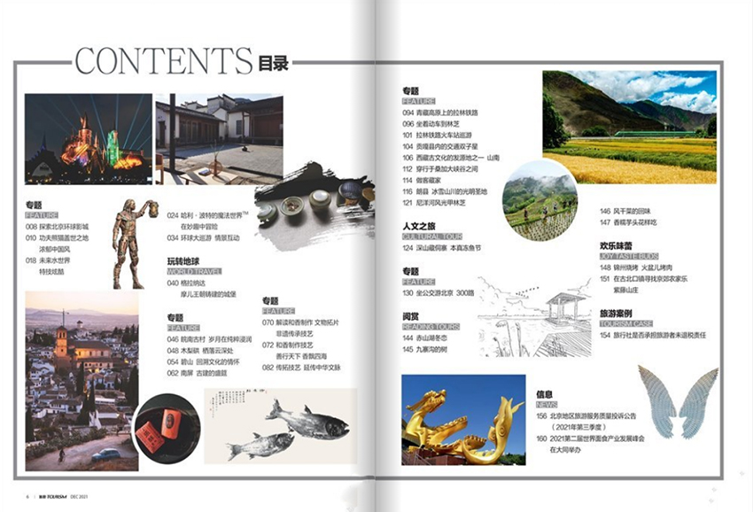 旅游雜志主要是以介紹旅游地點(diǎn)為主要內(nèi)容的一類(lèi)雜志。這類(lèi)雜志一般會(huì)給讀者帶來(lái)全球各地著名景點(diǎn)的詳細(xì)介紹、美食文化、民俗風(fēng)情、歷史傳承以及旅游體驗(yàn)等方面的內(nèi)容,同時(shí)也會(huì)提供旅游攻略、路線推薦、交通指南、酒店住宿、航班票務(wù)等旅游服務(wù)信息。在具體形式上,旅游雜志多以圖片為主,生動(dòng)形象地為讀者呈現(xiàn)美景佳處,同時(shí)也配合相關(guān)的文字或圖文并茂的故事來(lái)深入介紹當(dāng)?shù)氐娜宋?、歷史和文化。