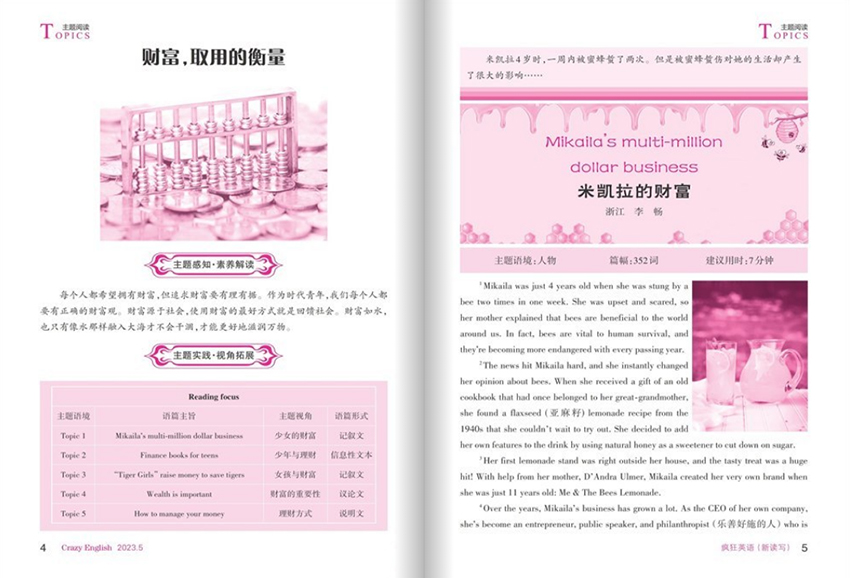 《瘋狂英語》(月刊)經(jīng)過多年的不懈努力,流行度高,大眾辨識度廣,創(chuàng)刊于1980年,開拓了視野,帶給讀者富有生活特色的內(nèi)容。時(shí)尚有趣、兼顧課堂內(nèi)外、貼近生活,適讀人群:初中生有一定英語基礎(chǔ)的學(xué)習(xí)者、12-15歲初中生等等。