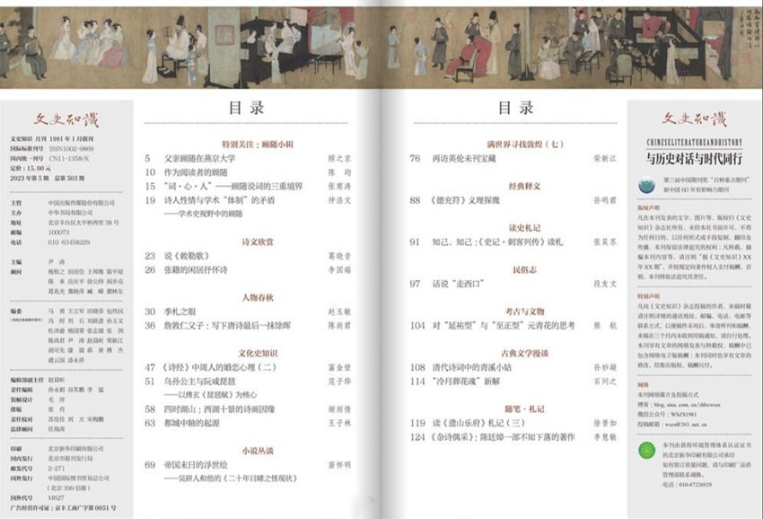 《文史知識》(月刊)經(jīng)過多年的不懈努力,流行度高,大眾辨識度廣,創(chuàng)刊于1981年,開拓了視野,帶給讀者富有生活特色的內(nèi)容。多年來,秉承著“與歷史對話,與時代同行”的編輯出版宗旨,以其“大專家寫小文章”的鮮明特色,在弘揚和傳播中國優(yōu)秀傳統(tǒng)文化的歷程中,魅力獨具。
