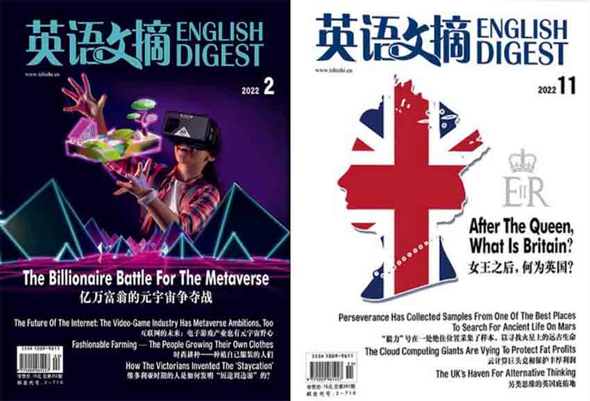 《英語文摘》(月刊)經(jīng)過多年的不懈努力,流行度高,大眾辨識度廣,創(chuàng)刊于1999年,開拓了視野,帶給讀者富有生活特色的內(nèi)容。英語學習刊物、前沿實用趣味、讀新聞學英語;適讀人群:大學生、英語老師、外教、英語愛好者等等。